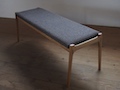 ファブリック張り、2人掛け用のベンチです。 セミオーダーで、お使いのテーブルに合ったサイズに変えてお作りすることも出来ます。