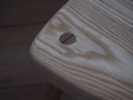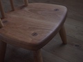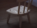 座面が広めの子供椅子で一歳半くらいからお使いいただけます。 金物は使わず木組みで頑丈に作っており、子から孫へと世代を超えて末永くお使いいただけると思います。 抜けないように打ち込まれたクサビは衣装的なアクセントになっています。