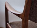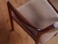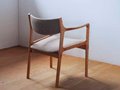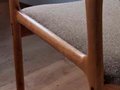 曲げ木によって加工されたファブリック張りの背もたれは、クッション性もあり優しく腰を支えます。 ダイニングチェアとしてお使いいただくほか、ゆったりと座れるよう設計されているため場所を限定せずお使いいただけます。 緩やかな曲線をもつアームは厚い無垢材を削り出して作られており、滑らかな触りごごちです。 将来的に座面背もたれともに張り替え可能です。張地は5色よりお選び頂けます。