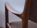 アームチェアbcd-4のセミオーダーです。 お客様のご要望により、背へのフィット感が得られるよう背もたれを高くしました。 ゆったりと座れるよう設計されているため場所を限定せずお使いいただけます。 緩やかな曲線をもつアームは厚い無垢材を削り出して作られており、滑らかな触りごごちです。