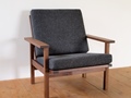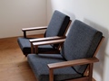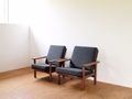角脚ソファ(bs-1)のセミオーダーです。 オリジナルよりも肘掛けを2センチほど幅広くし、座面幅や高さも座る人の体格に合わせて変えています。 背もたれは肩くらいまでの高さがあり、ゆったりと座っていただけます。 クッション内部には耐久性のある素材を使用しているため、へたりにくくなっています。 また、クッションのカバーはチャックで着脱ができ、汚れてもドライクリーニングで洗うことができます。
