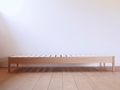 天然の木材の匂いであっても体質に影響を与えることでお悩みのお客様からのご依頼で製作しました。 ブナであれば問題がないことを確認し、通常スノコには軽い桐材を使用するところを、今回は全てブナ材で構成しました。 高さはご自宅で使い慣れている既存のベッドに合わせて設計しました。 無塗装、組み立て分解可能です。