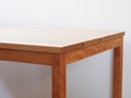 普段使いのテーブルとして使いやすい、シンプルな形のダイニングテーブルです。 天板の木口に見える黒い木は、しっかりとした構造にするための木工の技術が意匠的にも現れている部分です。 オーダーでご自宅に合ったサイズに変更できます。