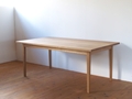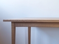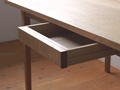 角脚のダイニングテーブルを、お客様のご要望に合わせサイズ変更し、引出をつけました。 引出の底板にもナラ無垢材を使用しています。