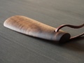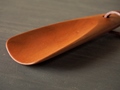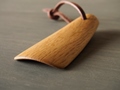 Mサイズの靴べらを小さなポケットにも入るように一回り小さくした携帯用Sサイズです。 フックなどに掛けるための紐には牛革を使用しています。 くるみ油でのお手入れを繰り返すことでしっとりとした艶が増していきます。