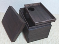 余分な装飾は施さず、シンプルに仕上げた茶箱です。塗装により様々な色を出しています。